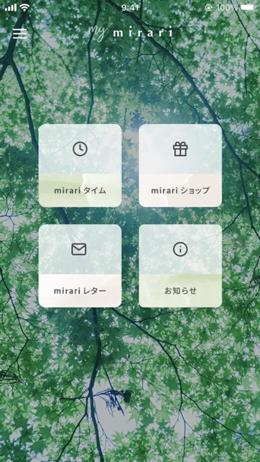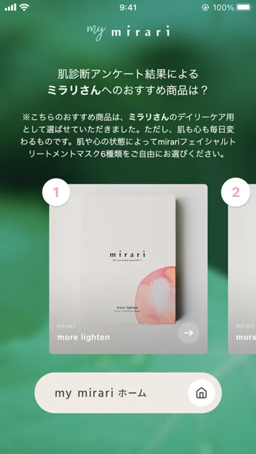 100%ビーガンコスメブランド「mirari」は、独自開発のアプリ「my mirari」を無料提供しております。アプリを立ち上げ最初のアンケートにお答えいただくと今の肌の状態がわかります。また、アプリ内でオリジナル・ラジオ「Dear.mi-you」や瞑想音楽を聞くことができます。mirariのプロダクトをアプリ内でもご購入いただけます。その他、更なるコミュニケーション機能は、来年の1月に追加される予定です。