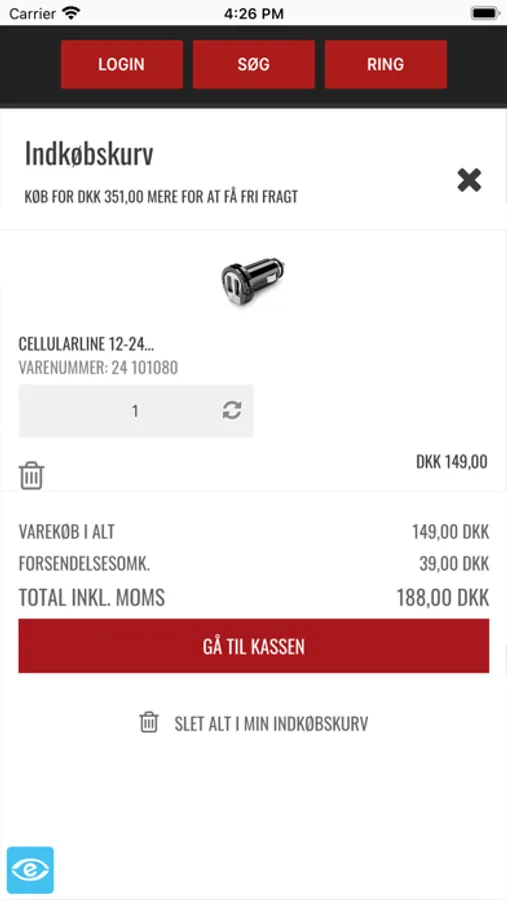 Avant Scan & betal er udviklet for at du som kunde, har let og hurtig adgang til hele Avant Denmark / biludstyr.dk sortimentet. Fra appen kan du scanne stregkoden på varen, eller en hyldeforkant, for herefter at putte den i "kurven". Du kan også scanne en vare og søge oplysningerne frem i appen, hvis der skulle være tvivlsspørgsmål omkring en specifik vare. Appen fungere på samme måde som du kender den fra biludstyr.dk. I toppen finder du også "Ring op" knappen, som giver dig hurtig adgang til Avant Denmark kundeservice.