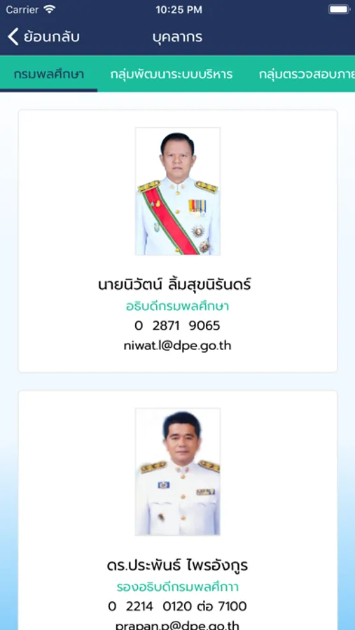 แสดงข้อมูลของกรมพลศึกษา