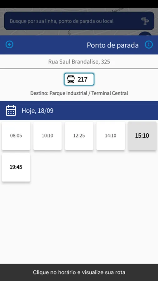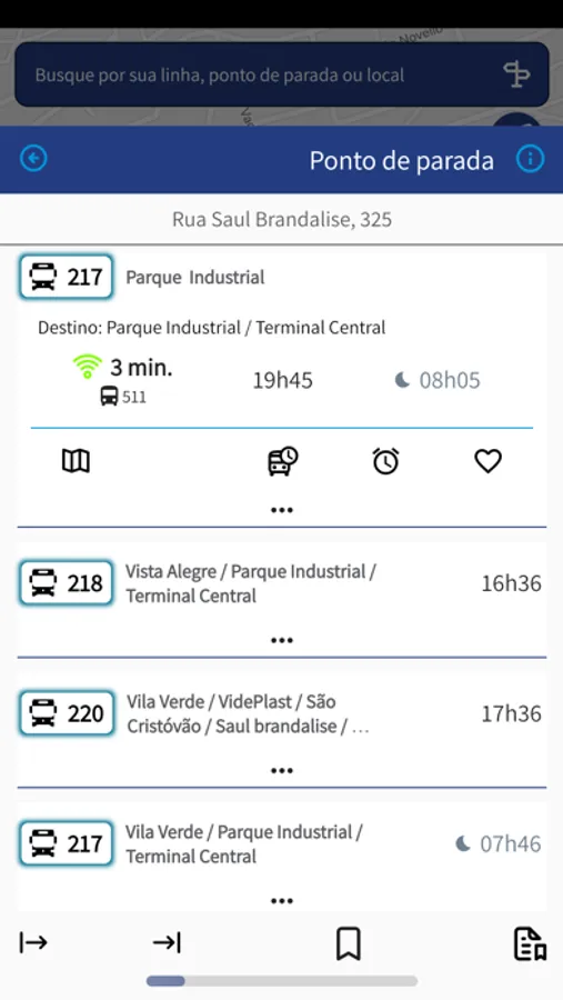 - Favoritar linhas. pontos de parada e deslocamentos planejados