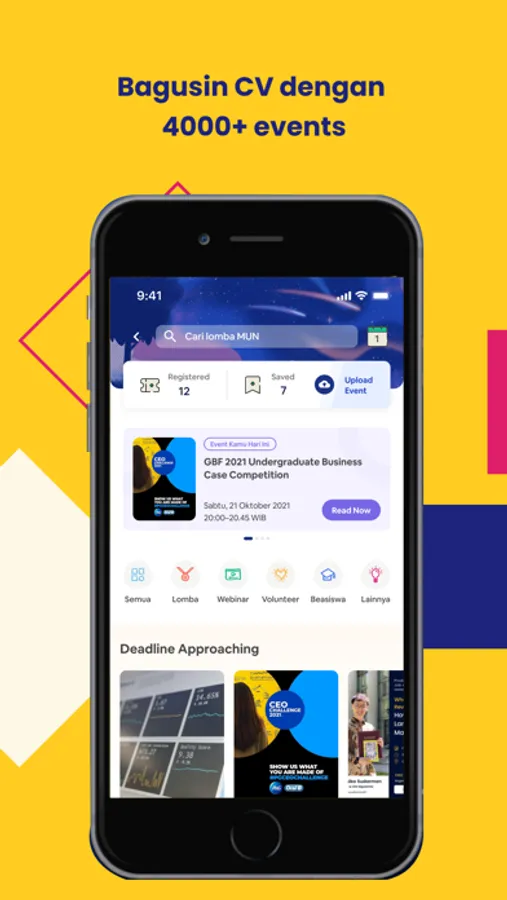 1. Event — Cari lomba, beasiswa, webinar, dll. EO juga bisa upload event & langsung terbitin sertif lewat aplikasi juga loh!