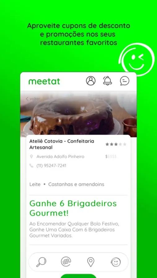Faça novos amigos e conheça pessoas interessantes com a mesma restrição ou opção alimentar que você. Aproveite para marcar um encontro em um estabelecimento perfeito para vocês e ganhe vouchers com desconto nos seus lugares favoritos!
