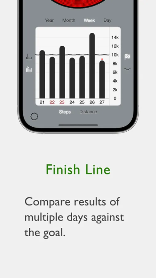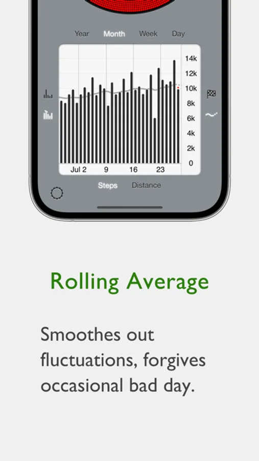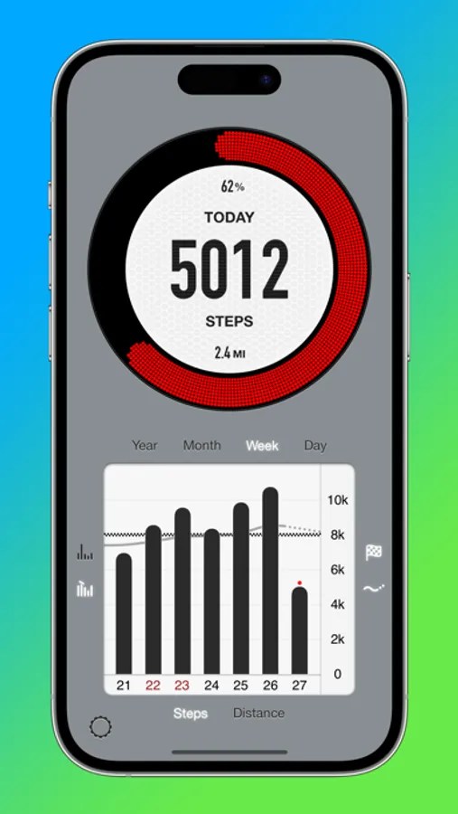 With your permission, Disco Steps integrates with the Health app to read the data of your walking activity. And so, not only data generated by carrying your iPhone, but also walking/running information supplied by all other fitness devices and apps participating in Health ecosystem — including, of course, the Apple Watch — does contribute to the visualization of your activity trends.
