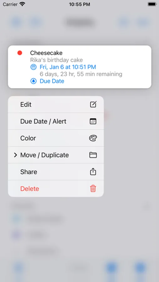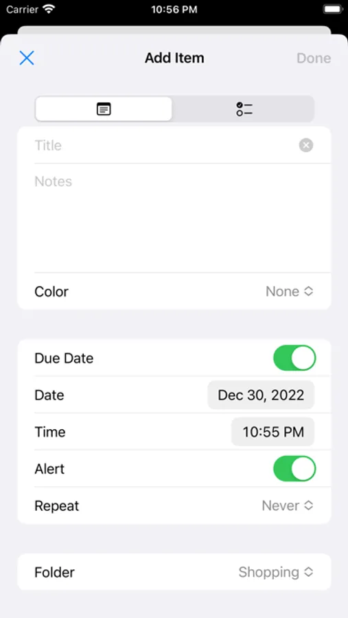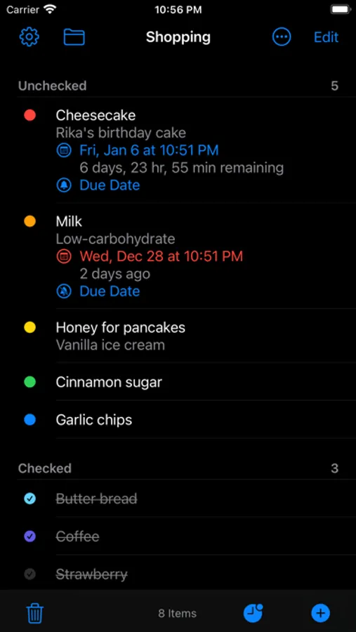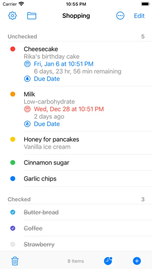 - Due date / notification (alert) settings for items (supports repeated notifications)