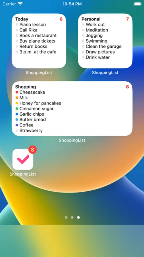 It's a shopping list app with reminders compatible with iOS14 home screen widgets.