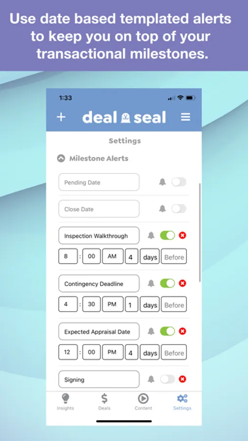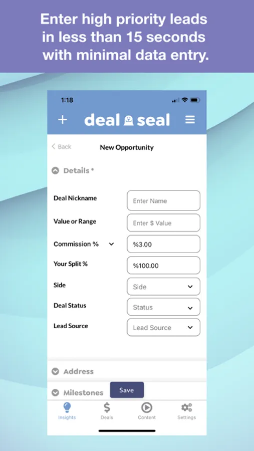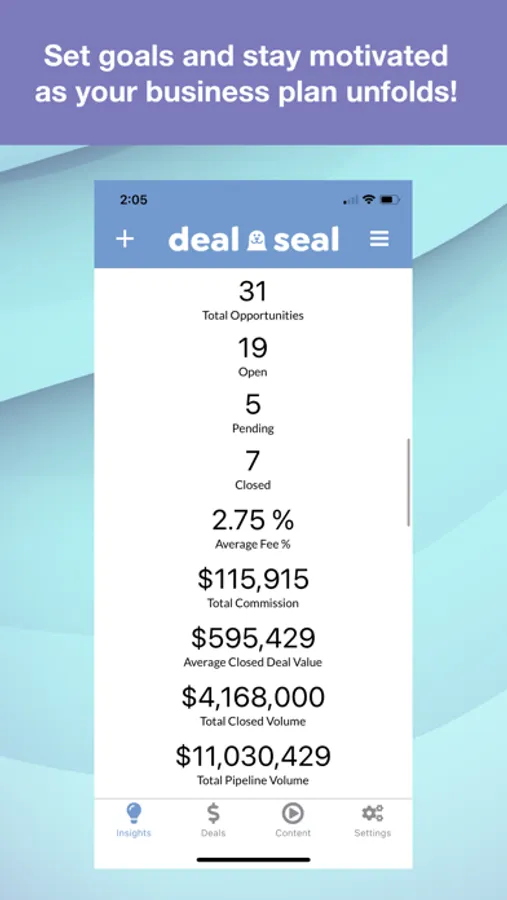 Designed by top performing agents, brokers and mentors, Deal Seal is a lightweight lead tracker, business planner and accountability partner all in one. Easily add leads in less than 15 seconds, cultivate and nurture those leads as you move them through your pipeline with easy swipe features and stay motivated with goals and adaptive insights that help keep you on track and informed about your business with what works and what doesn't. Become accountable to clients, to your business and to yourself. Don't stay trapped behind your desk, Stay focused on what matters most and seal more deals with Deal Seal!