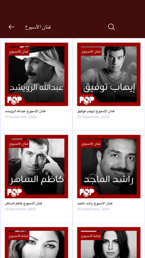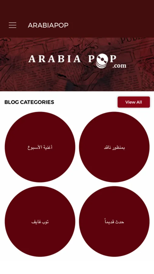 يقسم تطبيق أريبيا بوب منشورات المنصة حسب الفقرات اليومية التي يتكرر كل منها بشكل أسبوعي، و ذلك حتى يسهل على المتصفح إيجاد أي منشور. كما يتيح التطبيق خاصية البحث داخل كل فقرة، و هي كالتالي: "فنان الأسبوع" كل يوم أحد، "أغنية الأسبوع" كل يوم اثنين، "بمنظور ناقد" كل يوم ثلاثاء، "حدث قديماً" كل يوم أربعاء، "بريك: قبل و بعد" كل يوم خميس، "من الأفضل؟" كل يوم جمعة، و "توب فايف" كل يوم سبت.