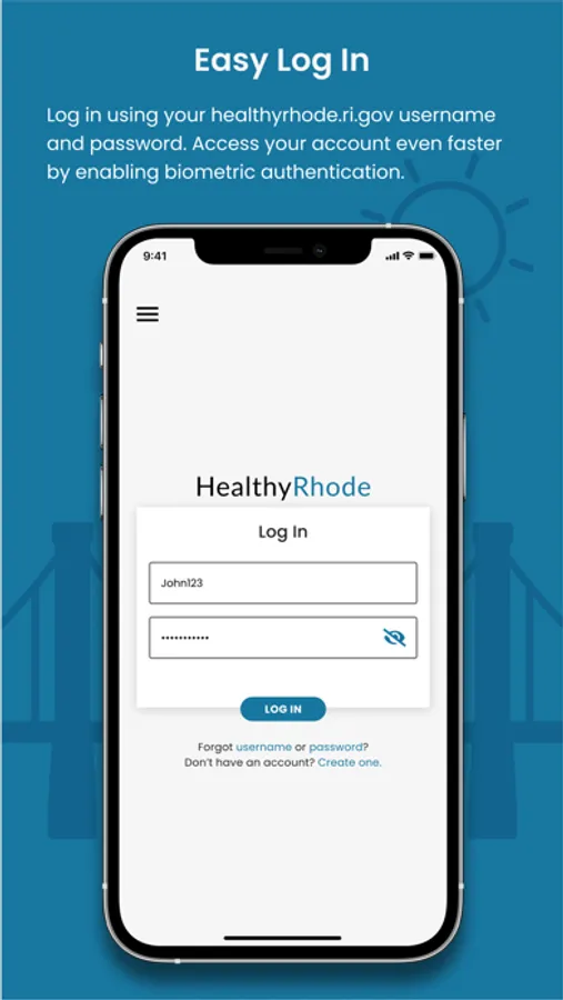 CREATE AN ACCOUNT Create an account that can be utilized on both the mobile app and the HealthyRhode website.
