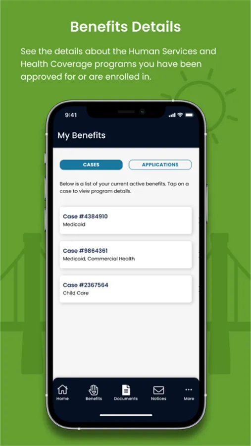 CHECK YOUR BENEFITS See the details of the Human Services and Health Coverage programs you are approved for or are enrolled in. See the status of applications for benefits in process.