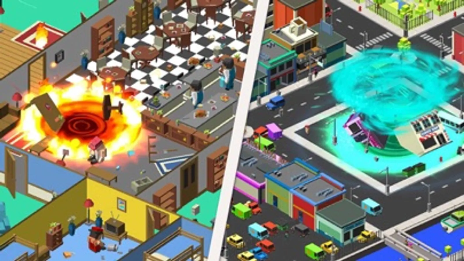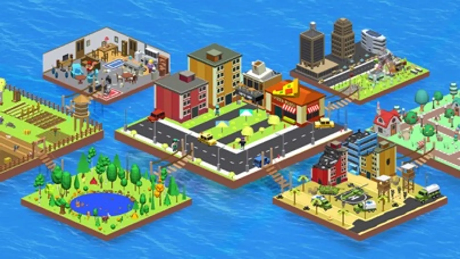- City - consists of a park, office buildings, and a suburban village. There is a beach along one part of the city. Unusual illustrations - a burning house, an accident on the street. Complete tasks to unlock new locations and skins.