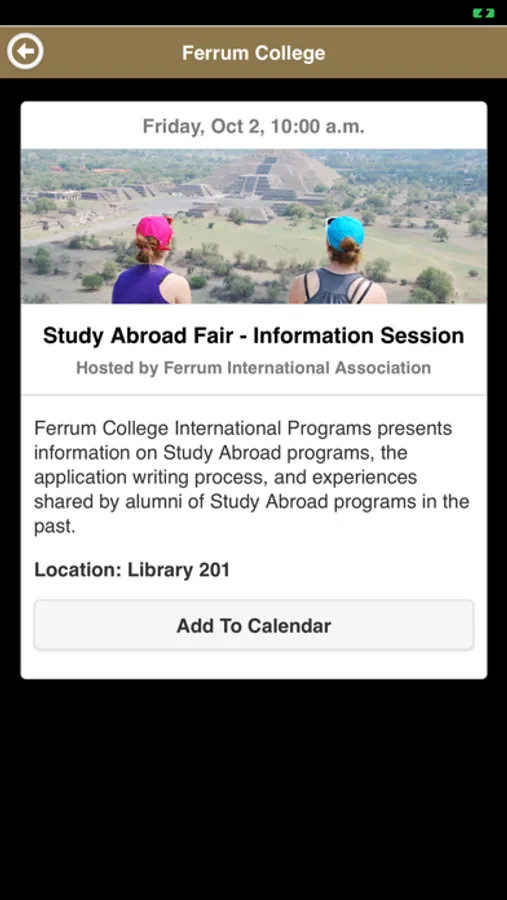 Use the Ferrum College Events app to find out what events are happening and find out how you can get involved on campus!