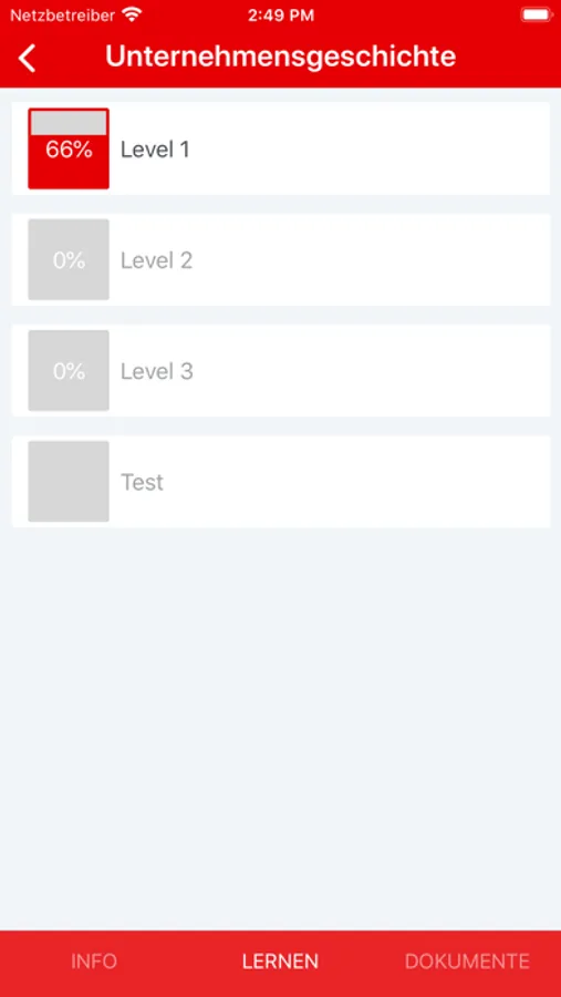 Zusätzlich zum klassischen Lernen wird auch Level-Lernen angeboten. Im Level-Lernen werden die Fragen vom System in drei Levels mit unterschiedlichen Schwierigkeitsgraden gegliedert und im Zufallsprinzip abgefragt. Zwischen den einzelnen Levels gibt es eine Verschnaufpause, um den Inhalt bestmöglich zu speichern. Dies ist notwendig, um einen hirngerechten und nachhaltigen Wissenserwerb zu erzielen. Ein Abschlusstest macht den Lernfortschritt sichtbar und zeigt, wo mögliche Defizite liegen und gegebenenfalls noch eine Wiederholung sinnvoll ist.