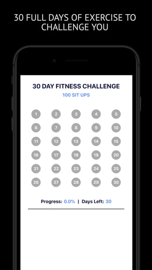 30 Day Fitness - 100 Sit-Ups is a fitness challenge that challenges you to achieve 100 sit-ups without taking a break on day 30.