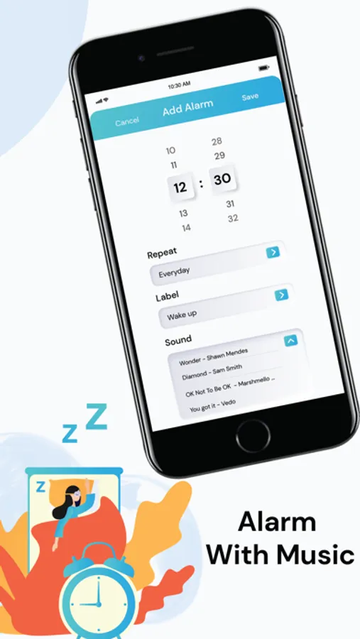 The newly developed feature allows you to pick a song from a website in our built-in browser. This unlimits your choice to customize your alarm clock and say good bye to the old boring ones. Simple click to Sound → Choose a song from web → Type in your website and search for your favorite songs.