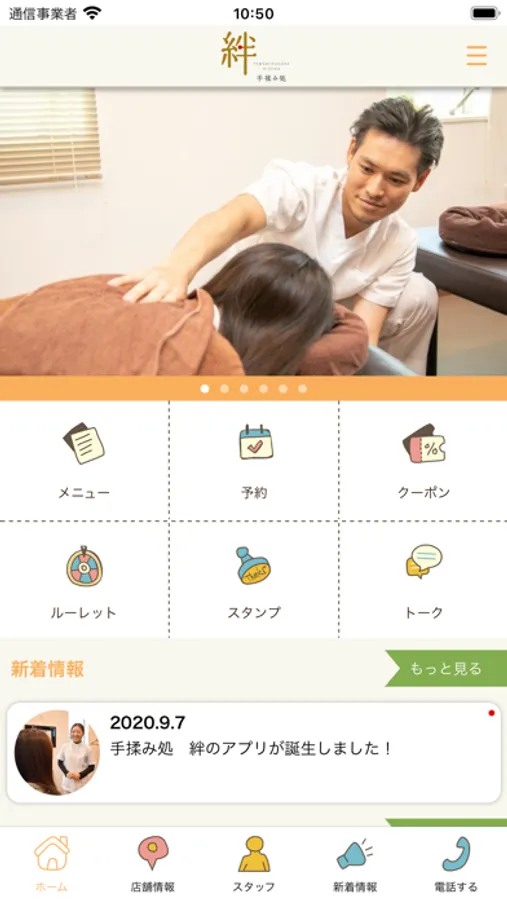 手揉み処 絆の公式アプリが登場。アプリを通して『手揉み処 絆』の新着情報やお得な情報をリアルタイムで受け取ることができます。また、いつでもお手元のスマートフォンから、メニュー、ご希望のお時間帯のチェック・ご予約などが可能です。アプリをインストールしていただくことにより『手揉み処 絆』を、より便利に身近にご利用していただけます。