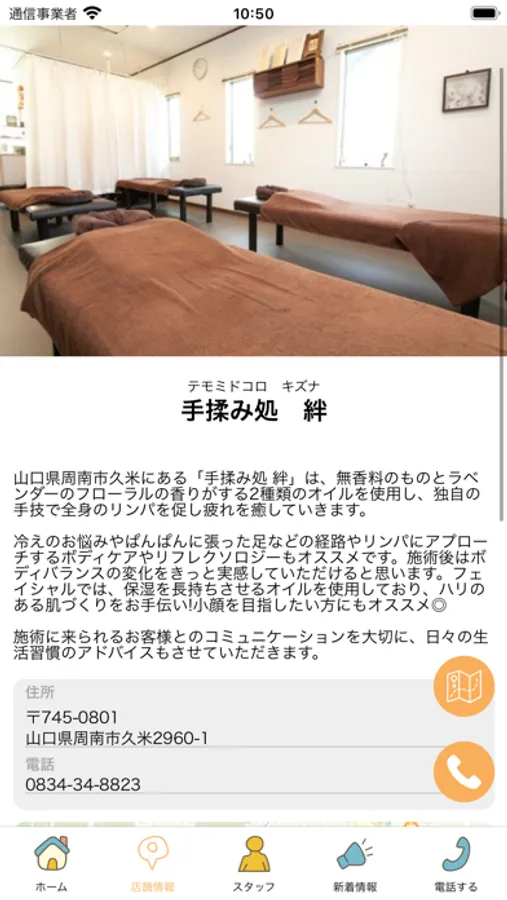 店舗のマップが表示され、地図アプリとも連携しているので、初めてのご来店の時も簡単に見つけることができます。