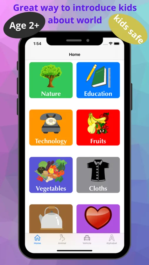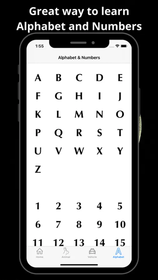 - Learn Alphabet and numbers by tapping on items.