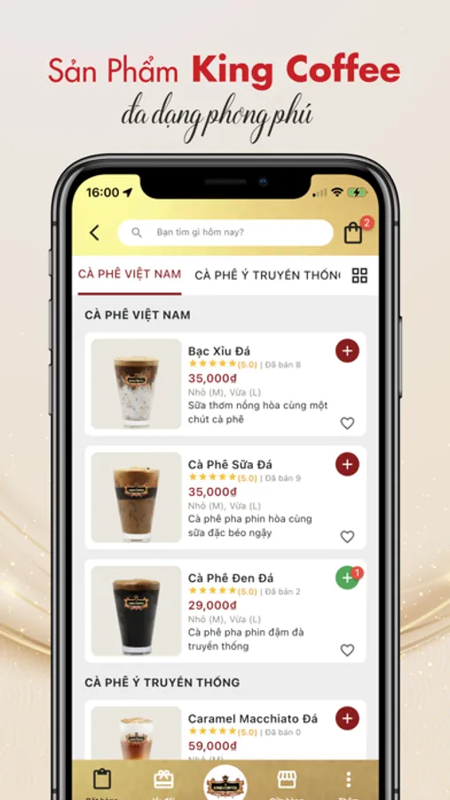 - Mô hình King Coffee Premium sang trọng, đẳng cấp phục vụ khách hàng với hơn 30 loại cà phê truyền thống trong nước và nổi tiếng trên toàn thế giới.