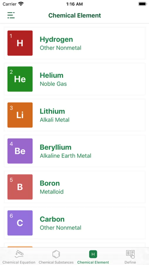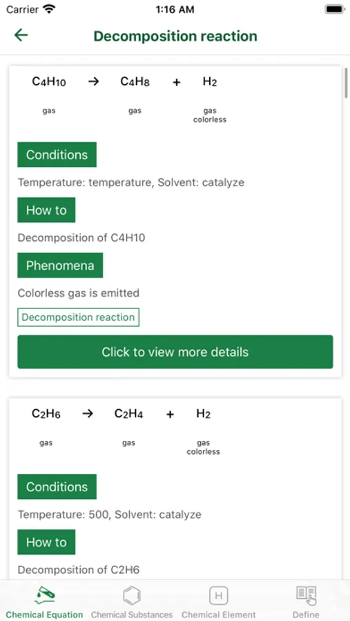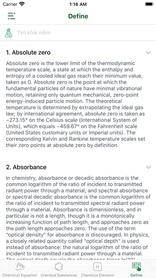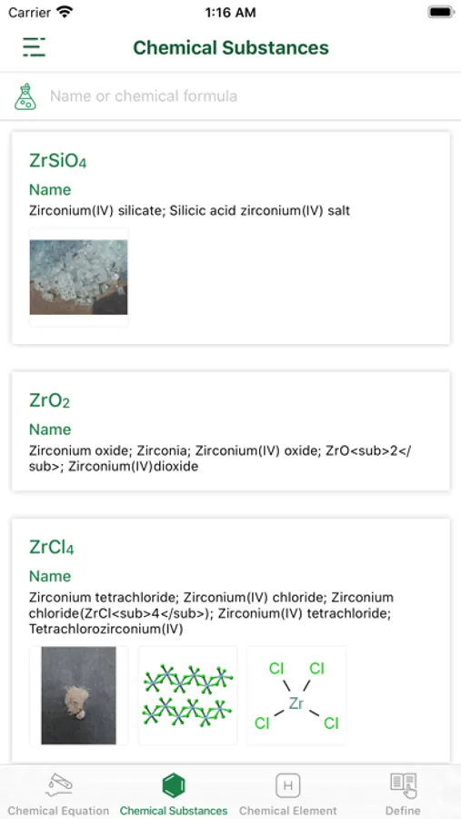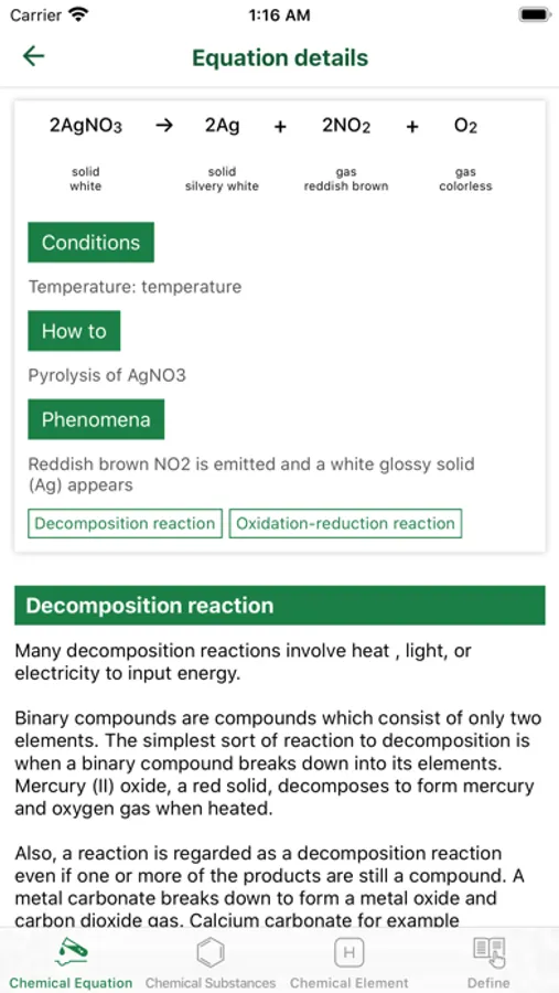 Application helps to find chemical equations, chemical substances and concepts in chemistry.