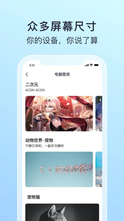 - 在 Bravo 中您可以挑选您喜欢的手机,电脑壁纸,用户头像等。
