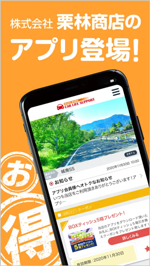 「栗林商店カーライフサポート」のダウンロード・ご利用は無料です。アプリダウンロード後にご希望の店舗をご登録の上、ご利用ください。