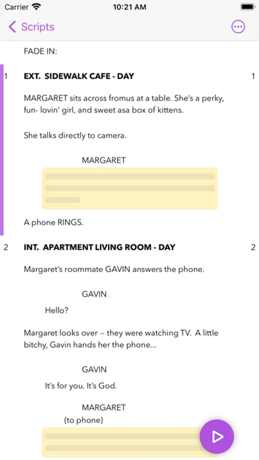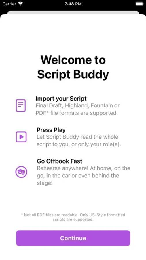 Script Buddy makes reading and listening to your scripts enjoyable. Rehearse on the go and go off-book faster with less effort.