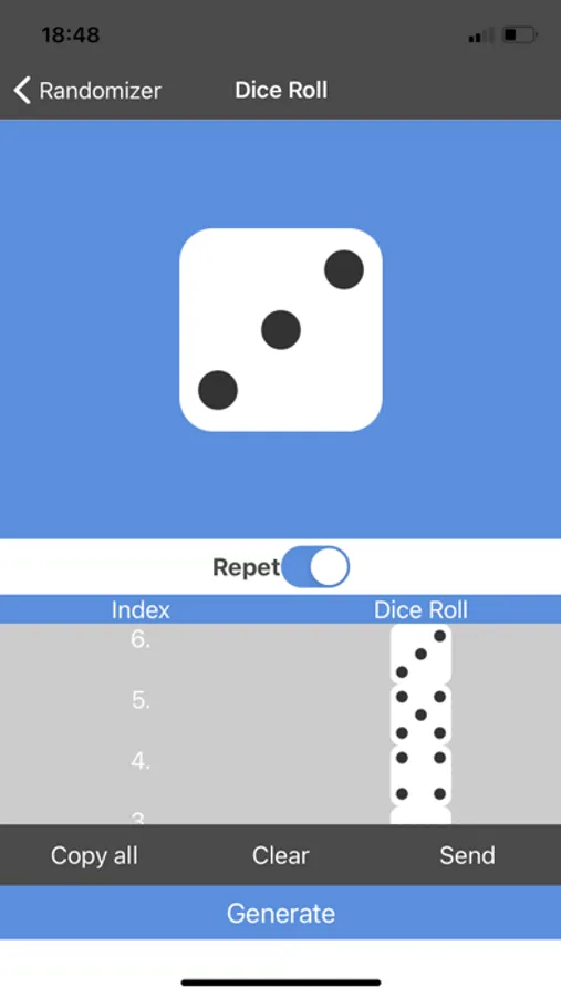 It is a simple and convenient random generator. The application contains various tools for your experiments. In this application you can: create a list of random numbers; create a list of random names or words; roll a bone; toss a coin. All actions are recorded in a list where you can track the sequence of random numbers, names, etc.