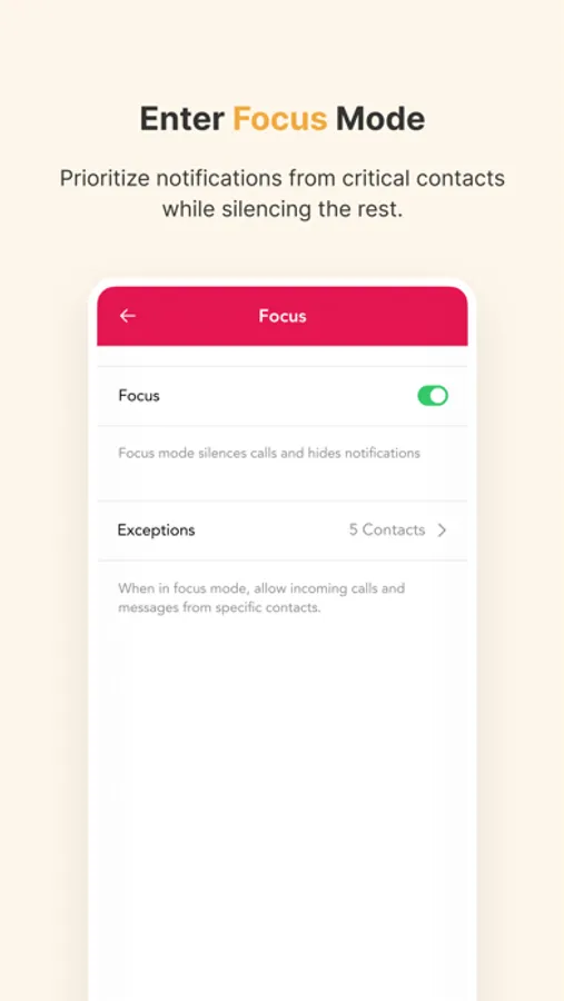 - Enable focus by prioritizing notifications from critical contacts while silencing the rest.