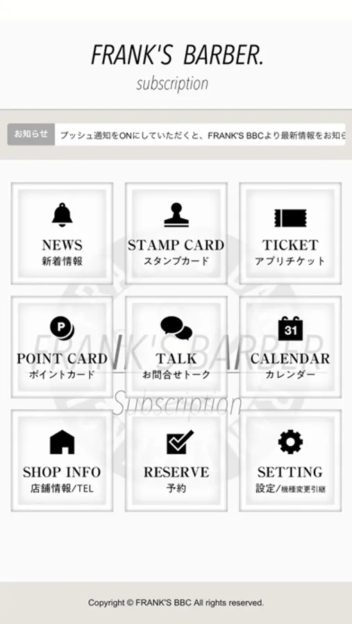 ・【FRANK'S BARBER&BEERCLUB】からの最新情報をプッシュ通知で受け取れます。