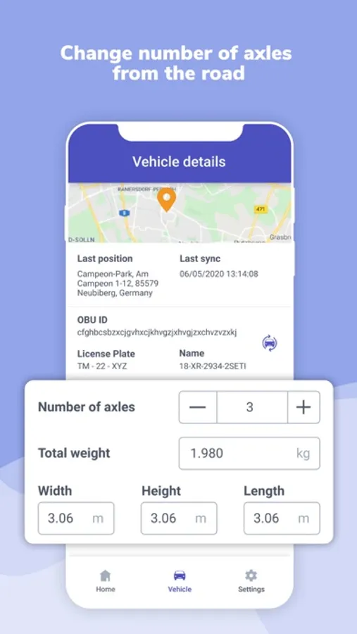 OBU1 Driver is meant to keep drivers informed with regard to their OBU device and allows them to change vehicle characteristics from the road (e.g. number of axles), so that the value of the road tax is calculated accordingly*.