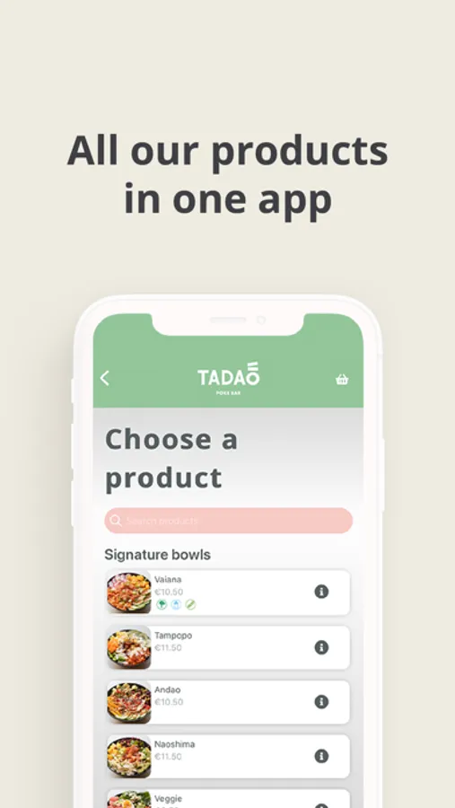 Où que vous soyez, avec l'application de Tadao Poké Bar, vous pouvez commander sans souci parmi la vaste gamme de poké bowls.