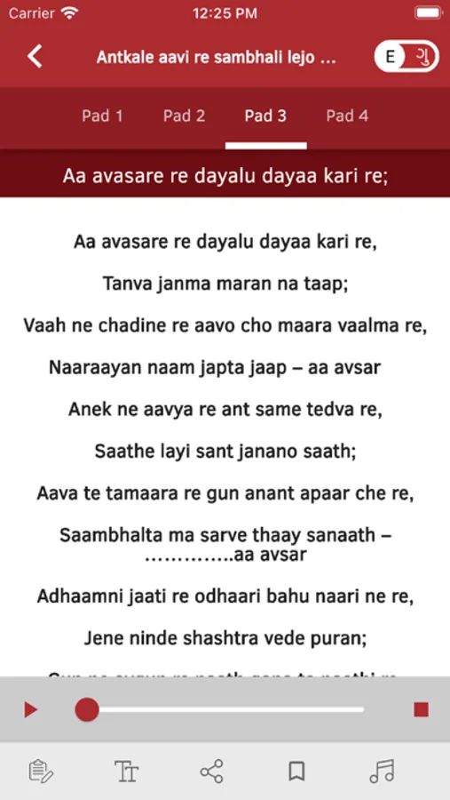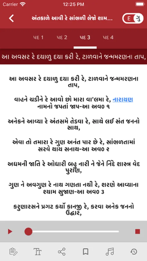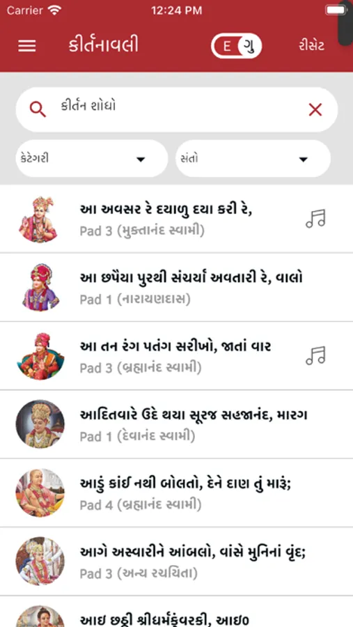 - All Kirtans are available in Gujarati and English Lipi.