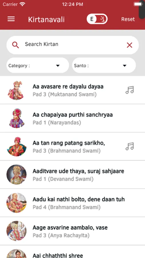 - All Kirtans have been categorised… for example: Ekadashi, Hindola, composer Saint etc.