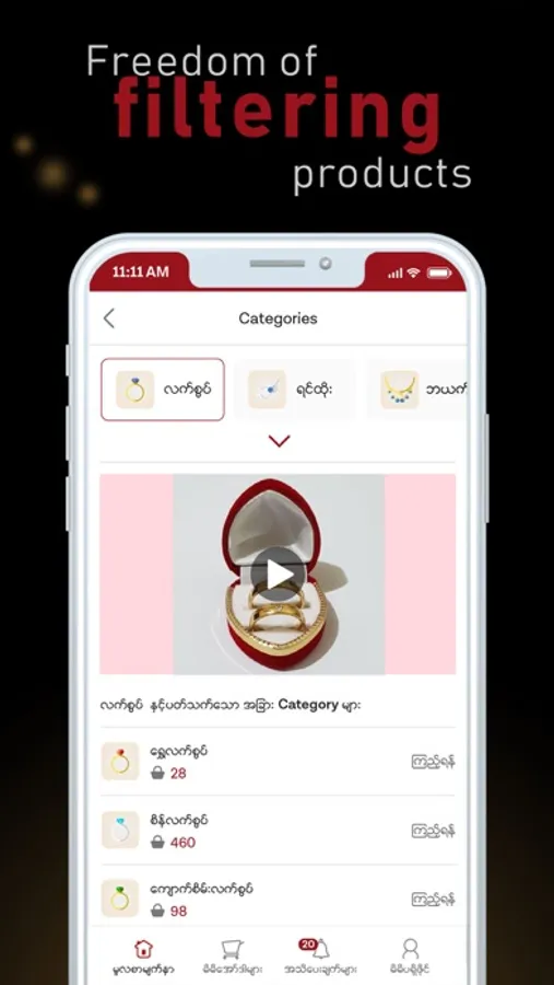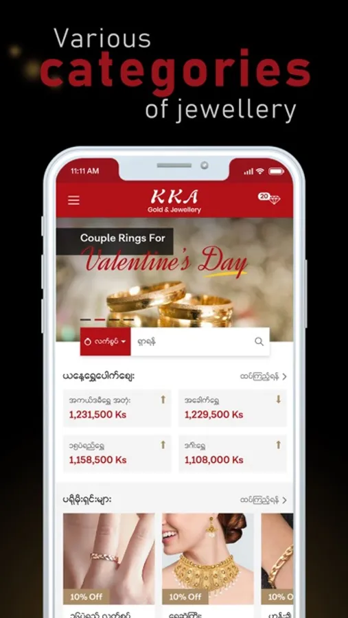 KKA Gold is a well known Gold and Jewellery Shop from Mandalay. We are based in the second largest city of Myanmar. We house many unique designs for you to choose from. All these designs are crafted to perfection with utmost care giving you the flexibility to customize the product's gold purity and color to suit your needs.