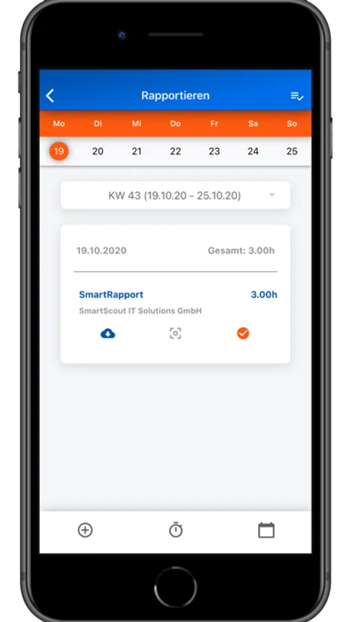 * Die volle Kontrolle, in einer einfachen Darstellung haben Sie alle aktuellen und abgeschlossenen Rapporte im Überblick.