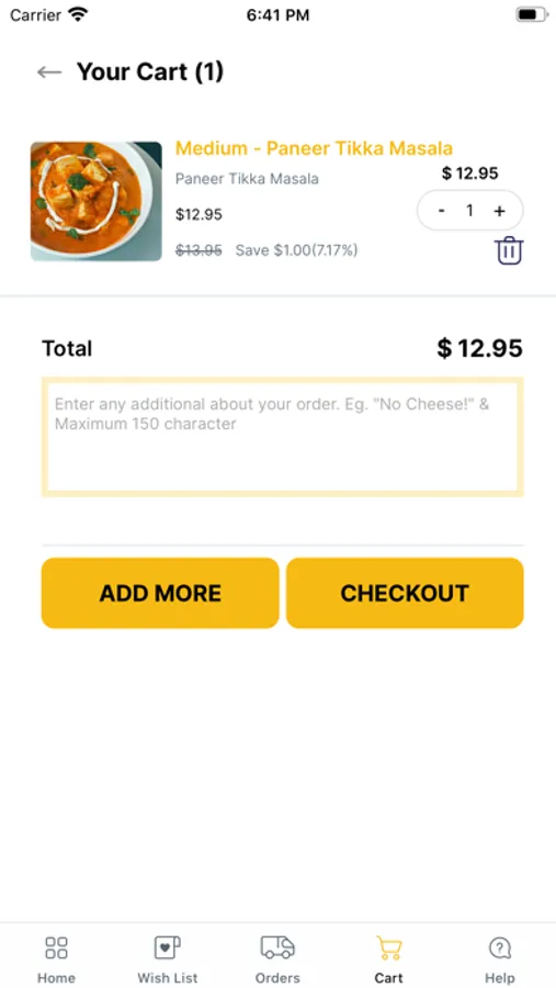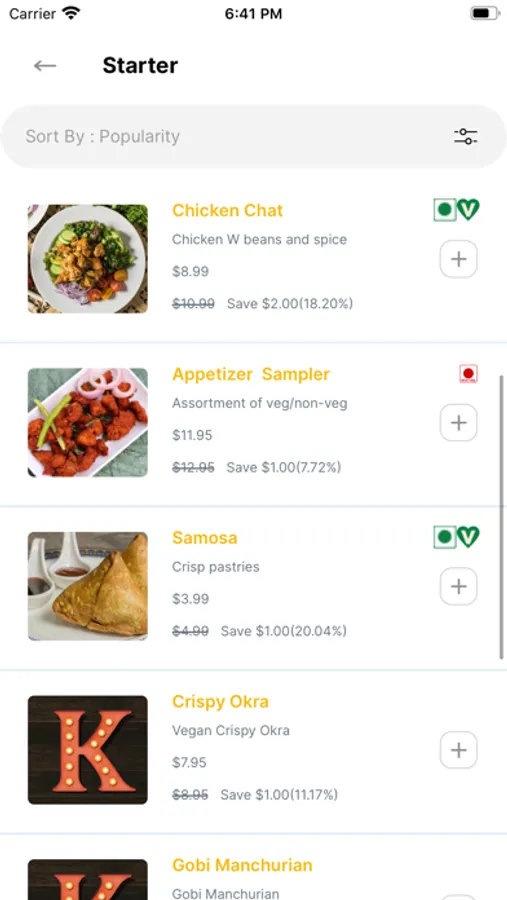 3) Browse the menu sections and Order your food - don't forget to save your order as a Favorite with heart icon for next time.