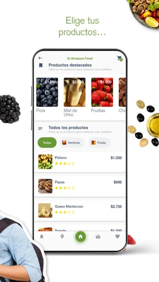 Encontrarás una variedad de tiendas de alimento cerca de ti: Verdulerías, Carnicerías, Pescaderías, Almacenes, emprendimientos, entre otros. Selecciona tu comercio, agrega los productos a tu carrito, confirma tu pedido y listo!
