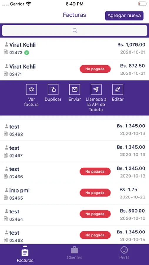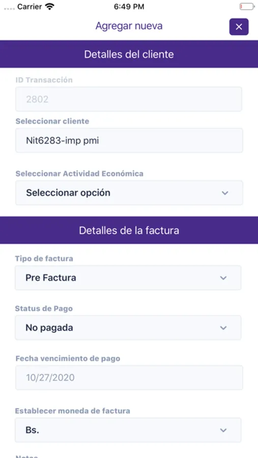 Aplicación creada para emitir facturas en línea y electrónicamente en Bolivia. Facturación certificada por el Servicio de Impuestos Nacionales.