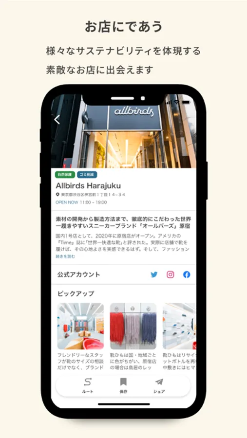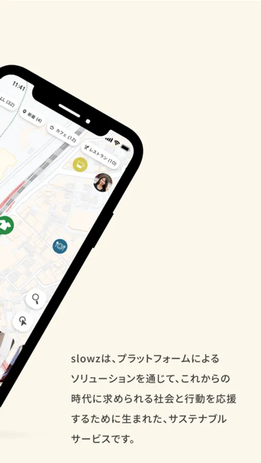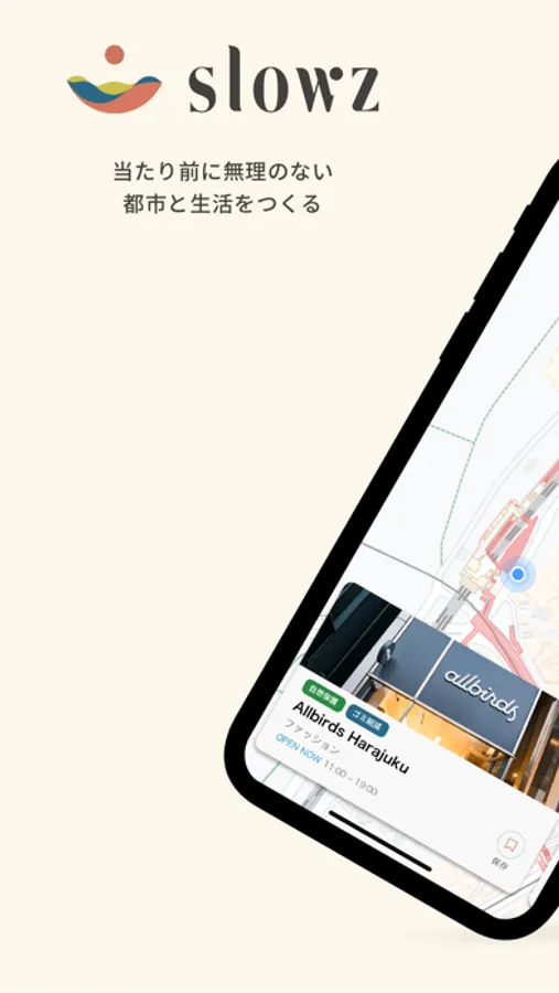 【slowz - スロウズ】はサステナブルな取り組みを行うお店を検索・保存ができるマップ型ポータルアプリです。