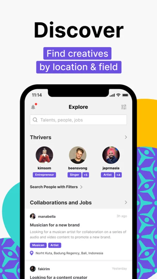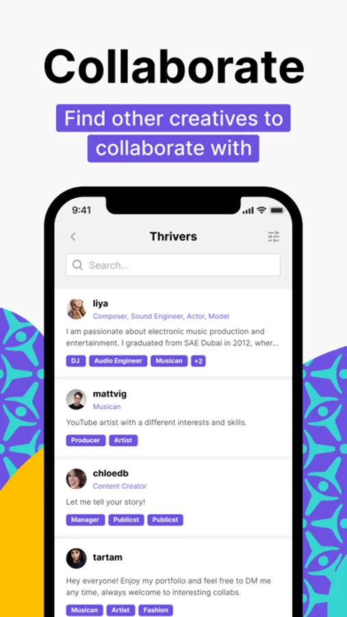 ThriveIN is a creative platform that allows talents such as singers, producers, musicians, models and others, to find each other, apply for jobs and other collaborative opportunities.