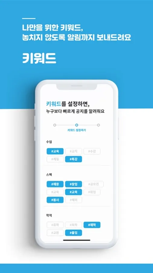 키워드를 설정하면 관련 새로운 공지사항을 놓치지 않도록 알림도 받아 볼 수 있어요.