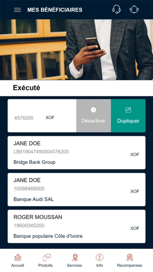 L’application BRIDGE TOUCH a été conçue pour vous mettre à disposition l’ensemble des services bancaires disponibles, mais surtout évolutifs et aussi en vue de, vous permettre d’avoir une expérience utilisateur marquante.