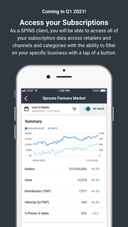 With SPINS Mobile, you can leverage SPINS’ rapidly expanding universe of industry data and insights from the palm of your hand. Stay ahead of trends and drive growth by having your data with you always.