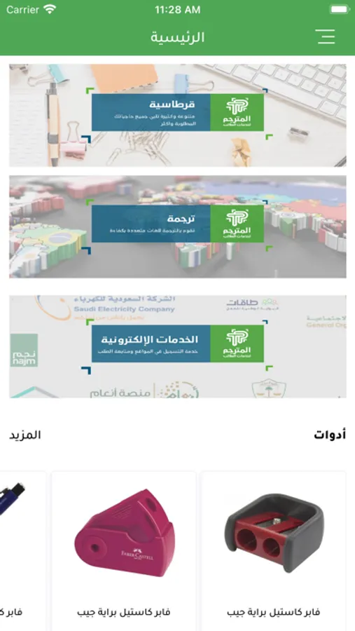 المترجم يقدم لعملائه مجمعة متنوعة من منتاجات المكتبية مثل الادوات المدرسية و الدفاتر الخ حيث يمكن للعملاء ان يقوموا بشراء منتجاتهم بكل امان و سرعة.