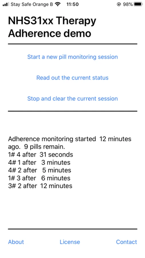 The NXP Therapy Config app accompagnies the NHS31xx Therapy Adherence Demo board. Use this app to interact with the Therapy Adherence firmware application running on the demo board.