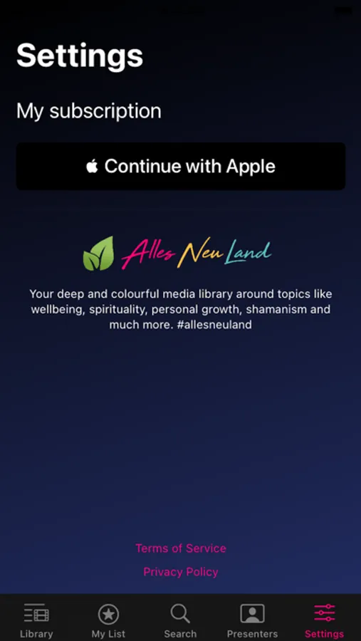 All recorded sessions, video and interviews of the platform and its annual Alles Neu Land Online Festivals will be provided in this app. Some content is available for free to all users, full access requires a subscription that can be purchased inside the app.