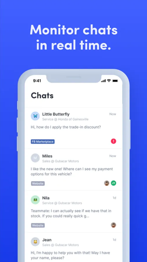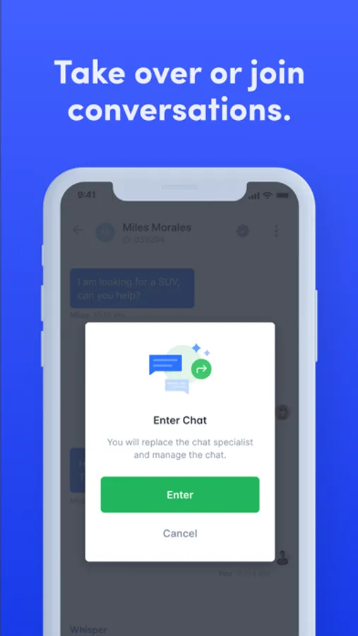 - Send whisper messages to Gubagoo chat specialists and your staff
