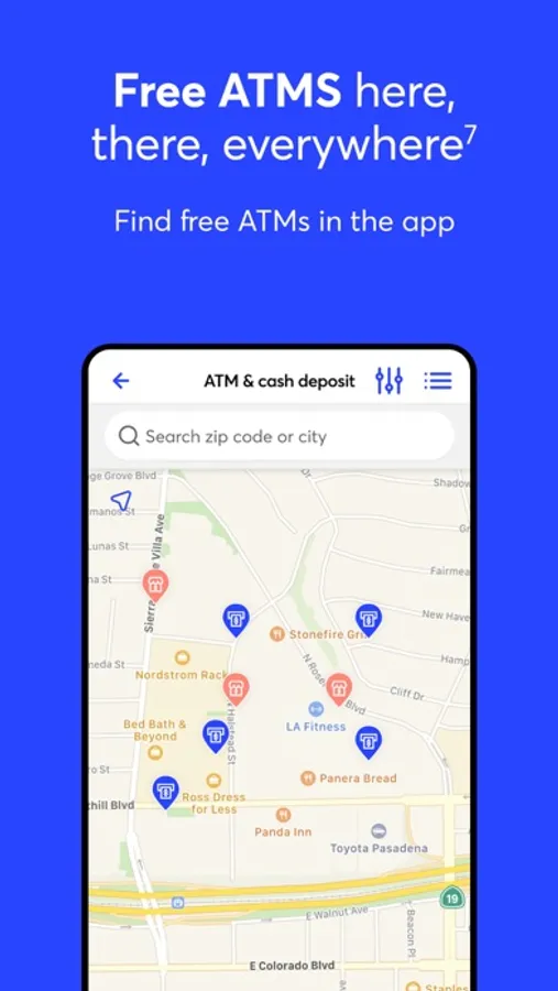 7. See app for free ATM locations. $3 for out-of-network withdrawals, plus any additional fees the ATM owner or bank may charge. Limits apply.