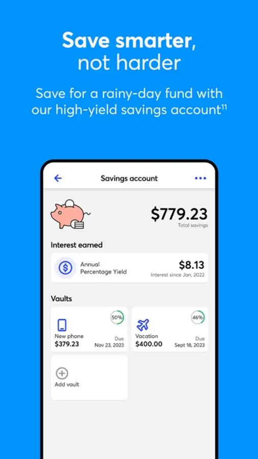 When it comes to payday, early is right on time. Get your pay up to 2 days early and government benefits up to 4 days early with direct deposit⁶. Need cash? Withdraw for free at our free nationwide ATM network⁷. Want to save? Earn more with an APY well over the national savings rate average¹¹.