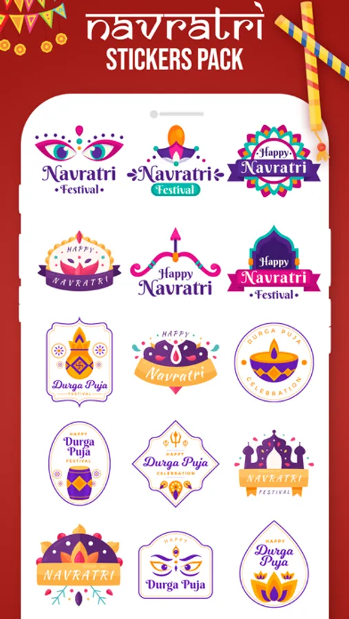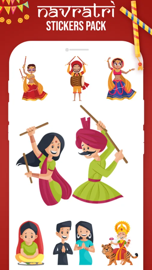 Navratri Stickers - Celebrate the festival of Navratri with great collection of Navratri stickers. Make your chat live and share your emotions with family and friends.